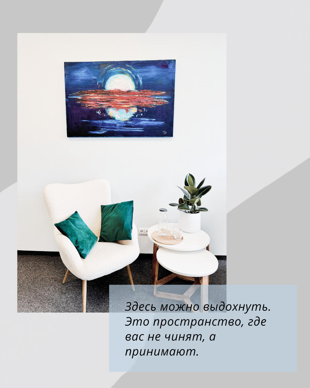 Теплое, поддерживающее пространство, где можно говорить о сложном и быть услышанным без осуждения.